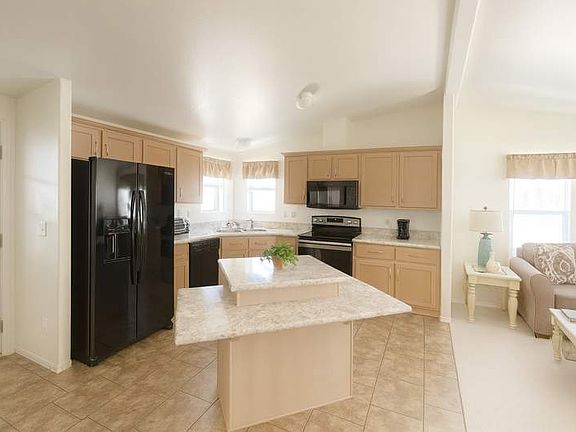 This 1540 square feet manufactured home built in 2018 at Dorado Canyon in Mesa, AZ offers 2 bedrooms and 2 bathrooms. The spacious living room is perfect for entertaining guests, while the dining room provides plenty of space for family meals. The master bedroom boasts a private ensuite bathroom, providing a tranquil retreat from the day. The modern kitchen is equipped with all the necessary appliances, including an oven, fridge, dishwasher, microwave, and garbage disposal. Additionally, there are laundry facilities with washer/dryer hook-ups for added convenience. The home also features central A/C and geo-thermal heating to keep residents comfortable year-round.Dorado Canyon is a vibrant 55+ community located in Mesa, AZ, offering residents a variety of amenities to enjoy. There are beautifully landscaped grounds with mature trees, providing a picturesque backdrop for outdoor activities. Residents can take advantage of the BBQ area, heated pool, as well as enjoy the patio area for relaxing in the Arizona sunshine. The community is conveniently located near shopping, dining, and entertainment options, making it easy for residents to explore all that Mesa has to offer. With a welcoming atmosphere and modern amenities, Dorado Canyon is the perfect place to call home.