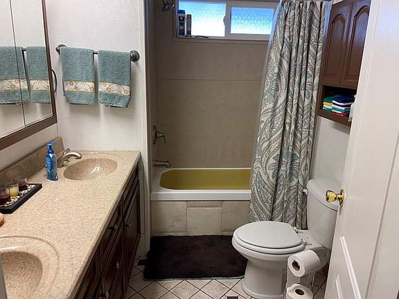Beautiful 1450 square foot home that includes enclosed Arizona room. Located across the street from clubhouse, pool, hot tub. Arizona room has third bedroom. Two bathrooms. Walk-in closet in master bedroom with in suite bathroom. Includes all appliances, washer /dryer, water filtration system, furniture, beds, tables. Totally furnished - walk in ready to live. This home is not going to last long! Call today to make an appointment to view this beautiful three bedroom home!