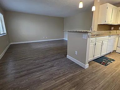 The kitchen is designed with granite countertops and a convenient bar that opens to the living room, perfect for entertaining or unwinding after a long day. An in-unit washer and dryer add everyday convenience.