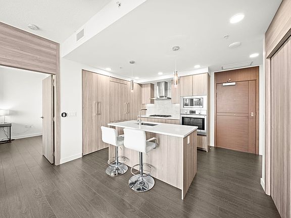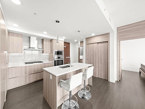 Stunning SE FACING SUB-PENTHOUSE at PARK ESTATES II with expansive views including Mount Baker, featuring soaring over-height ceilings and floor-to-ceiling windows, the home is filled with brilliant natural light from the morning sun. This exceptional layout includes two ensuite bedrooms, a high-end kitchen with fully integrated Bosch appliances, a 5-burner gas cooktop, with built-in shelving and storage throughout. Step outside onto the wraparound balcony and take in the expansive city and mountain vistas. Enjoy five-star amenities, including a state-of-the-art fitness centre, golf simulator, movie theatre, party room, bowling alley, swimming pool with hot tub, sauna, indoor gym, and more. Call to book your private appointment!