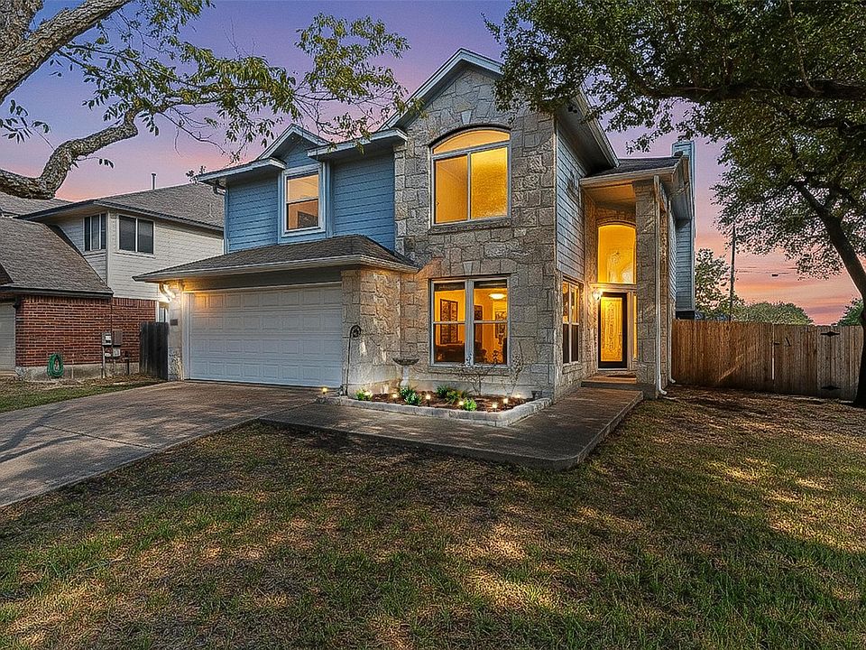 Feels like home when you enter through the gorgeous beveled glass front door into the foyer with a dramatic high ceiling. The layout of the home gives you choices when it comes to how you use the 2nd living area or the formal dining room. The kitchen features stainless steel appliances, a very useful farm sink with fitted prep surfaces that are easy to use & remove. Windows throughout lighten up each space - especially in the living room that features the cast limestone fireplace. Relax in the extended soaker tub and let the jets ease away the days stress, or get invigorated with room to move in the extended walk-in shower! Throughout the home, low-maintenance Luxury Vinyl Plank flooring makes life a little easier, as does the insulating, fade-resistant exterior paint over the durable HardiPlank siding. Other updates to help with utility bills include: energy efficient windows, replaced HVAC, security camera system as well as updated fixtures throughout the home. Like Pecans or Peaches? You can have both with the trees on and adjacent to this huge corner lot. This corner lot is large enough to have your own private oasis, gardens, room to play..... and includes a shed, and no back-fence neighbors! You will experience a real sense of community in Wells Branch with all of the amenities, community groups and activities put on by the MUD and the voluntary neighborhood association! Multiple facilities & sport courts, miles of trails including the disc golf course, are available to keep residents busy and two dog parks for Fido & friends -ALL WITH NO HOA! The neighborhood also has a full-service Community Library with a vast schedule of programming for kids and adults. 3300 Kissman's location is unbeatable: Less than 3 mi to the Metro Line & Rail system, The Domain, La Frontera, major employers, toll roads... IH35 and MoPac are a snap to get to, making it easy to get downtown or to any of our surrounding communities. Get Home for the Holidays at 3300 Kissman!