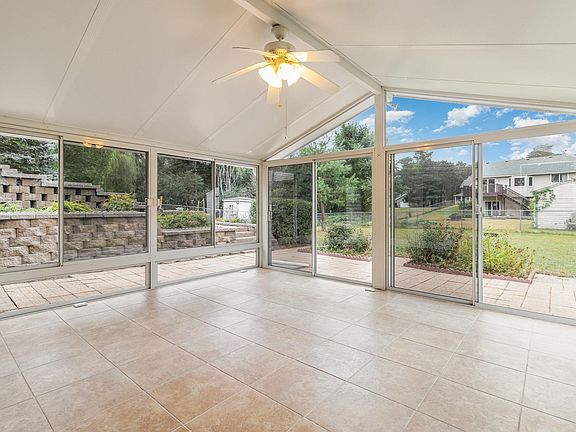 Welcome to easy living in Lake Ridge. This walkout rambler feels warm and open, with an open kitchen with breakfast bar and a cozy parlor/porch that steps out to your own private deck. The lower level offers a generous family room with gas "Pot Belly" stove, opening to a sunny three-season Sunsetter porch and patio. The fenced yard, garden space, and shed make outdoor living simple and enjoyable. With new entry flooring, new roof (2024), new AC, and a heated and insulated garage with some extra storage/workbench area as well. Everything here is ready for you to settle in comfortably.