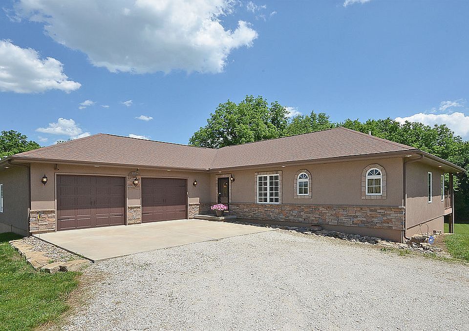 Gorgeous reverse 1.5 story home on 4.7 acres. Living room w/ natural lighting & fireplace w/ intricate wood mantel. Eat-in kitchen w/ open floor plan, gleaming wood floors & matching stained cabinets, kitchen island, bayed windows & access to sun room. Elegant formal dining room w/ built-in cabinet & hanging light fixture. Luxurious master bedroom w/ access to deck, master bath w/ jetted tub & standing shower. Full finished basement w/ media room, wet bar & rec room! 30x50 finished shop w/ 3/4 bath & hobby room!
