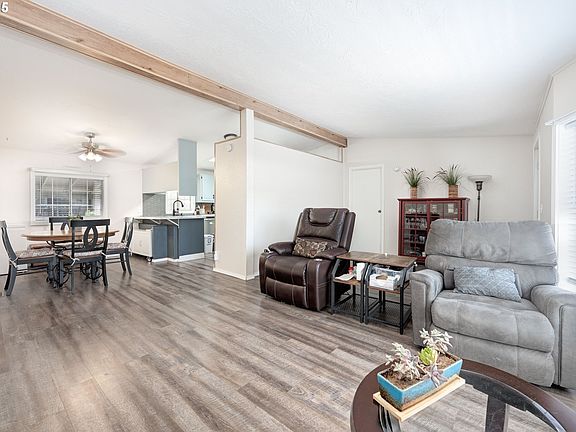 This well-maintained double-wide manufactured home features a great layout with newer stainless steel kitchen appliances and a convenient pantry. Many updated including remodeled bathrooms and luxury vinyl flooring. Move in ready. Enjoy peace of mind with a new roof installed in 2021 and fresh exterior paint. The fenced backyard offers space for entertaining or relaxing. Located in a friendly community with park