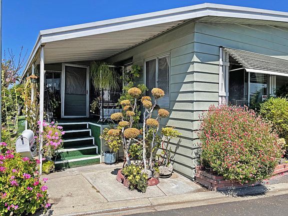 Rare listing in this highly desirable Senior Community of 55+ with incredibly low rent of $791 per month (rent controlled). Consisting of 2 bedrooms and 2 baths, a huge living room with vaulted ceilings & open beams, dining area with built-in cabinets, spacious kitchen with island, separate family room, and enclosed porch/sunroom for additional living space that's not included in square footage. Features include laminate flooring throughout, newer refrigerator, dishwasher, microwave, and gas range along with a Reverse Osmosis filtration system. New HVAC system, ceiling fan for additional cooling, fireplace, and hall bath with granite countertop. Master bath has separate garden tub & stall shower. Inside Laundry area for washer & dryer. Exterior has a shed & covered deck with pergola, spacious side yard & garden area. Easily fit 2 cars in the carport & plenty of guest parking. Community Pool/Spa, clubhouse, recreation, plus activities. Low cost yearly registration with No property tax!