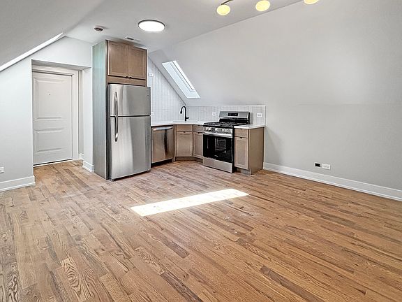 Welcome to this beautifully gut-rehabbed 1 bedroom, 1 bathroom apartment offering modern finishes and an open, comfortable layout. Large windows bring in plenty of natural light, making the space bright and inviting. The apartment features stainless steel appliances, hardwood floors, and in-unit laundry for convenience, and a private entrance into the unit. Top floor unit flooded with natural light. Everything is updated, so you can enjoy this brand-new home with a sleek and stylish design. Located at 3300 W Pershing Rd, you'll have easy access to public transportation, shopping, dining, and nearby parks. This home combines comfort and convenience in one great package. Owner pays for water, trash, sewage, and snow removal. Tenant is responsible for gas and electricity. Move-in fee (one-time fee) is $350 per person. Move-in fee (one-time fee) for pet is $25O. Non-smoking building. Lease duration is negotiable.