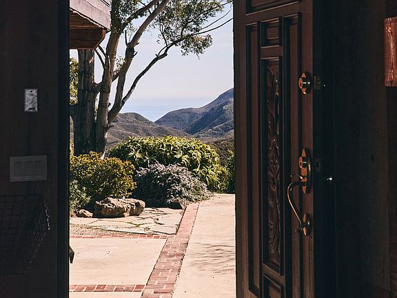 This furnished Rustic 3,000 sq. ft. home sits at the top of the hill surrounded by 5 acres and a detached garage. Stunning views through the Mountains into Hidden Valley, Lake Sherwood and mountains in the distance as well as ocean views through the mountains on the other side of the home. Located at the corner of Mulholland and Westlake Blvd. , this home is only minutes to "Malibu Wine Country" and is only 10-15 minutes to both Westlake Village and Malibu beaches. As you enter the home, to the left, you have the kitchen with custom cabinetry, high end appliances and views of both the ocean and Hidden valley on the opposite side. Past the kitchen is the 600 sq ft great room that leads out to the back covered portion of the wrap around patio. To the right of the entryway is the living room with a 30 foot high pitched ceiling with floor to ceiling glass windows, wood cladding & beams and wood burning fireplace. All the bedrooms are set off the living room with 2 bedrooms and powder room behind, one in-suite bedroom to the right of the living room that opens up to the wrap around deck. Up the staircase is the third in-suite bedroom with a private patio with views of the ocean through the mountains.