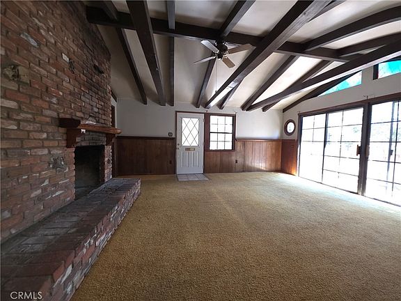 Welcome to 33007 Spruce Drive, a distinctive mountain cabin just 220 feet from the shoreline of Green Valley Lake, offering an unbeatable combination of space, setting, and potential. With rare level-entry access and off-street parking for two, the home opens into a striking great room with exposed wood trestle beam ceilings, a fireplace, and stained glass window insets that catch the afternoon light. Sliding doors lead to a spacious deck, perfect for relaxing or entertaining in the fresh mountain air. The main level also includes a bedroom and full bathroom, along with a dining and kitchen area that features a second fireplace, plentiful storage, a breakfast bar, and a dedicated room for firewood or gear. Downstairs you'll find two more bedrooms, another full bath, and a flexible bonus room complete with a kitchenette—ideal for guests, hobbies, or creating separate living quarters. While the property would benefit from updates to enhance comfort and reflect your personal style, its layout, character, and enviable location make it a compelling option in Green Valley Lake. Whether you're seeking a full-time home, weekend retreat, or investment with potential, this cabin is ready for its next chapter.