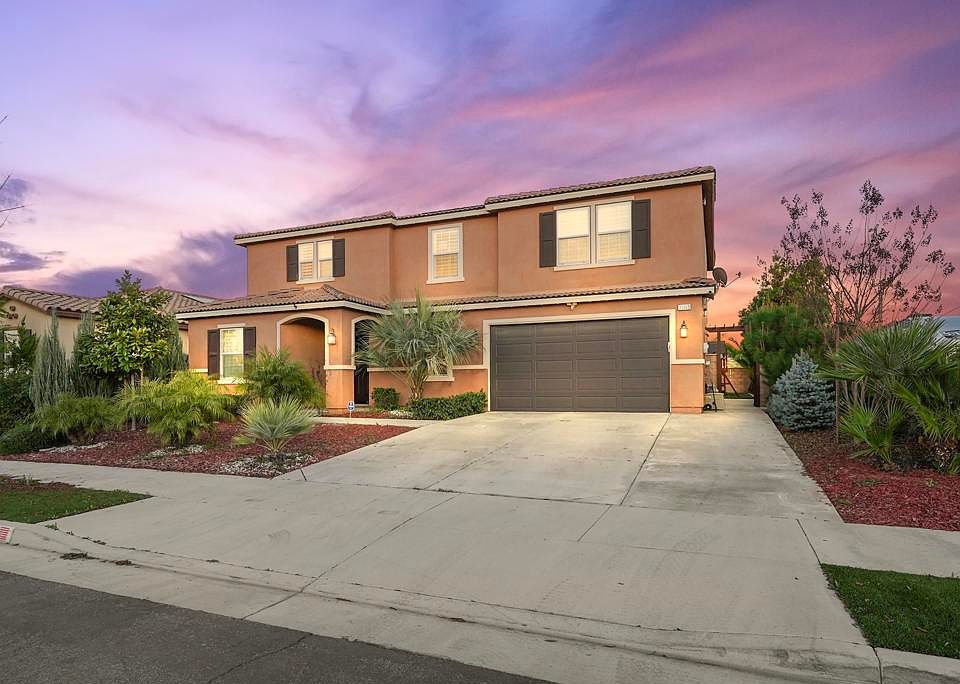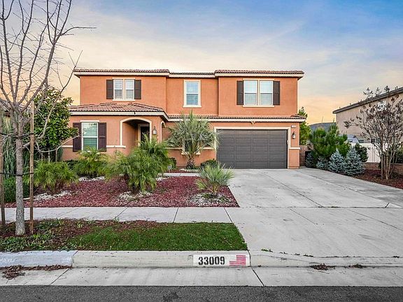 Welcome to 33009 Marin Fields Rd in Winchester, a stunning KB Home residence located in the highly sought-after Camberly Place community, where modern design meets energy-efficient living and resort-style convenience. This beautifully upgraded five-bedroom, three-bathroom home offers a spacious and versatile layout, including a bedroom and bathroom on the first floor, and an optional 6th bedroom on the second floor, perfect for guests, multi-generational living, or a private home office. From the moment you enter, you’ll notice that no expense was spared when selecting premium builder upgrades and custom finishes. The home features real-wood custom gates and barn doors, high-end flooring, designer kitchen cabinetry, elegant light fixtures, and stylish countertops, creating a refined yet warm living environment. Plantation shutters throughout add both beauty and energy efficiency while elevating the home’s overall elegance. The open-concept kitchen flows seamlessly into the main living space, making it ideal for entertaining or relaxing with family. Step outside to your enclosed patio, allowing you to host gatherings or enjoy the outdoors comfortably in any season. Both the front and backyard feature low-maintenance landscaping, offering year-round greenery without the upkeep. This home also includes 15 solar panels, providing significant energy savings and helping reduce monthly utility costs — a major advantage in today’s market. Located just steps from Washington Park, residents enjoy green space, play areas, and community amenities. Soon, an additional brand-new park with walking and hiking trails will be right in your backyard, enhancing the lifestyle and long-term value of this neighborhood. A rare and highly desirable perk of this Winchester location is being part of the award-winning Temecula Valley Unified School District, known for its top-rated schools. You’re also minutes from new shopping centers, dining, and entertainment, with easy access to Temecula Wine Country, Lake Skinner, Diamond Valley Lake, and Old Town Temecula — offering endless options for outdoor recreation, wine tasting, and weekend adventures. If you’re looking for a move-in-ready home with luxury upgrades, solar savings, top-tier schools, and an unbeatable location, this Winchester gem delivers on every level.