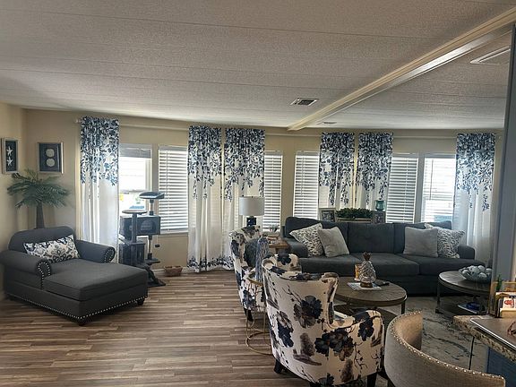 Fantastic new listing in Dunedin,West Wind II 55+ community,Low lot rent $692.00 This home is about 25 feet above sea level!This lovely home has been meticulously cared for and painted throughout!24X48 1152 square feet! Roof over 2023, Water heater 2020, Vinyl siding, Vinyl windows,Cold, comfortable Central air, Shed 8x8Laundry in the shed, Washer & Dryer 2020. *Fantastic kitchen 10x11-Granite countertops, S/S Electric glass top LG stove, S/S refrigerator LG w/water & ice, S/S dishwasher LG, Cabinets galore with an inviting snack bar open to the living area. *Dining area 11x11 w/ hutch*Living room 14x22 w/ wonderful energy efficient windows, Gorgeous laminate wood floors throughout. *Primary bedroom 11x13, perfect space for king or queen furniture, very relaxing room, w/2x9 wall length closet. *Ensuite 7x8 with vanity, step-in shower & medicine cabinet. *2nd Bedroom or Office 11x12 very spacious w/2x8 closet. *Hallway bath is a glamor bath! 8x9 Large vanity with lots of drawers & counter space w/ designer Vessel sink bowl, tub shower combo w/ tiled surround. Don't miss out, this is such a beautiful home. Carport, patio area & a private back yard patio 12x18. This community has a gated entrance, a fantastic welcoming clubhouse with many activities, a wonderful heated pool, and low lot rent $692.0;0 all you pay is water & electric. Close to everything, Church's, shopping, restaurants & bars in Palm Harbor & Dunedin.