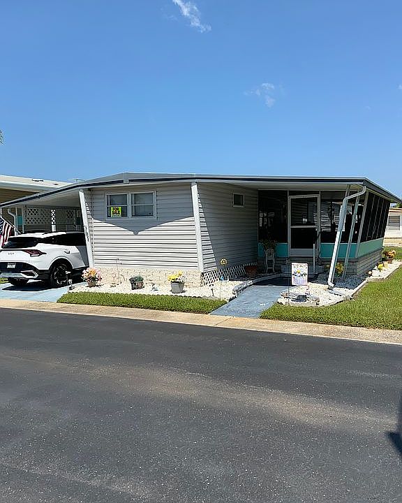 As is: 12’x56’ with added 20’x10’ screened sunroom. 2 car carport with laundry room. Comes furnished with stove, refrigerator and newly purchased stack washer & dryer combo. Ac unit with duct work completely replaced 06/23/22 with 10 yr warranty. OBO