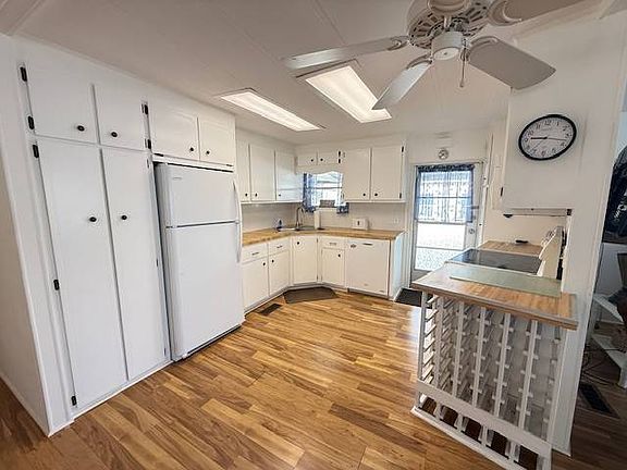 Westwind is a 55+ community conveniently located to shopping, beaches, golf, and entertainment. Westwind is in the lovely town of Dunedin, Florida just 2 miles from Honeymoon Island with sun-drenched beaches and pristine Florida landscape. Travel + Leisure Magazine just named Dunedin, Florida as the "Most Livable" place to retire in the United States! Extensive shorelines abound so the fishing is fabulous. Limitless recreation activities are found in various Pinellas County parks, and the Pinellas Trail is just minutes away from us. Westwind has two community clubhouses that each offer a heated swimming pool, billiards room, library and shuffleboard. An active social calendar offering classes in aquatic-exercises/arts & crafts/card & board games/dinners & dancing/BINGO and much more! This 1978 home is being sold TURN-KEY. Just bring your clothes and you are home. The home features 2 bedrooms and 2 bathrooms. The home features an updated air conditioning system that was replaced in 202 and the roof was sealed in 2022. The living room features front door entry, laminate flooring, neutral walls, and a ton of windows bringing in all of that natural light. It is beautifully furnished and has an open concept. The kitchen is a large space with lamiante flooring, lots of white cabinets, and butcher block look counters. There is a double pantry, large stainless steel double corner sink with window above and wine rack. The kitchen is open to the dining room and living room. The dining room is a large area with neutral walls and a built-in China cabinet for added storage. The master bedroom is a very large room with neutral walls and carpet and three (3) closets. There is a large ensuite with a large vanity, vinyl flooring, and a step-in shower. There is a linen closet and tile backsplash. The second bedroom is the perfect size for hosting family and friends. There is neutral walls and carpet and a double closet. The guest bath has a tub/shower combo with tile, a large vanity, vinyl plank flooring, wallpaper and tiled walles. All listing information is deemed reliable but not guaranteed and should be independently verified through personal inspection by appropriate professionals. All Florida Mobile Home Sales Inc. cannot guarantee or warrant the accuracy of this information by or condition of this property. The buyer assumes full responsibility for obtaining all current rates of lot rent, fees, and pass-on costs. Additionally, the buyer is responsible for obtaining all rules, regulations, pet policies, etc., associated with the community, park, or home from the community/park manager. All Florida Mobile Home Sales Inc is not responsible for quoting of said fees or policies. LOT RENT: $692 and includes lawn and trash service.