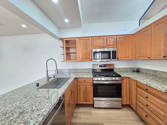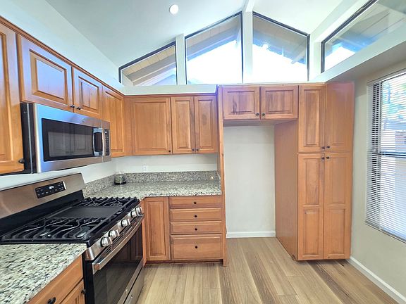This spacious 2-bedroom, 2.5-bathroom multi-level townhome offers 1,243 sq. ft. of stylish living space with an attached 2-car garage and plenty of storage. Perfectly designed for comfort and functionality, this home is move-in ready upon approval! No pets allowed. Property Features: Open floor plan with high vaulted ceilings and a bright, airy atmosphere Recently painted interior with modern, neutral tones Updated kitchen with granite countertops, stainless steel appliances (stove, microwave, and dishwasher) Spacious living room with a cozy fireplace perfect for relaxing evenings Skylight and large windows offering plenty of natural light Half bathroom downstairs for guests Updated vanities in all bathrooms Recessed lighting and elegant vinyl plank flooring throughout the home Upstairs loft ideal as a home office, reading nook, or extra living space Garage & Laundry: Attached 2-car garage with ample storage space Washer & dryer hookups conveniently located in the garage Community Amenities: Enjoy access to a community pool and jacuzzi perfect for relaxation and recreation This home combines modern upgrades with a functional layout and is located in a well-maintained community. Whether you're entertaining guests or enjoying a quiet evening by the fireplace, this townhome has everything you need. Location: Conveniently located near shopping, dining, and freeway access, making commutes a breeze. Ready for Move-In Upon Approval! Don't miss out on this beautifully updated townhome schedule your showing today!