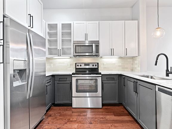 - Exterior features: 10 ft. Ceiling, 6 inch baseboards, Backsplash, Barbecue, Black Granite, Black Hardware, Custom wine rack, Dry Cleaning Locker Service, Electric Vehicle Charging, Electric Vehicle Charging Station, Electricity included in rent, Framed Mirror, Free Weights, Garages, Garbage included in rent, Kitchen Island, Oversized Tubs, Package Receiving, Pet Park, Press Cafe, Quartz countertops, Spruce Lifestyle Services, Stainless steel appliances, Stand up Shower, TV Lounge, Track and Pendant lighting, USB Port, Undermount Sink, White Granite, White/Gray Cabinet Combo