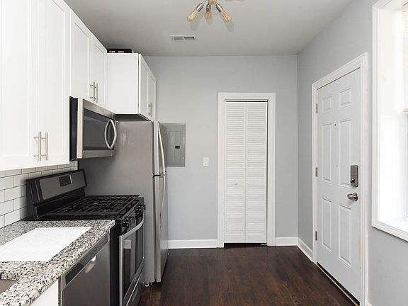 Tall ceilingsSpacious bedroomsRehabbed bathroomIn-unit laundryNew kitchenGas forced air heatingGranite countertops