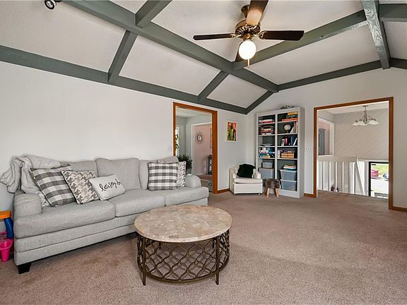 BACK ON MARKET, BUYERS FINANCING FELL THROUGH- Welcome to your spacious split-entry home in the Christopher Heights neighborhood of Gladstone! This impressive residence features 4 large bedrooms and 3 full bathrooms, offering ample room for both relaxation and entertainment. Step inside to discover a bright and airy living room with vaulted ceilings and a cozy fireplace, perfect for gathering with family and friends. Dine in the formal dining room or the eat-in kitchen! Retreat to the master suite, complete with vaulted ceilings and a luxurious master bath featuring a double vanity for added convenience. Enjoy the newly installed carpet throughout, adding a fresh touch to your living spaces. The finished lower level offers a fantastic recreation room, ideal for play or leisure, while the main level laundry makes chores a breeze. Outside, a large deck overlooks a serene, treed, and fenced backyard, perfect for outdoor gatherings and relaxation. With no HOA, you can enjoy the freedom of homeownership in this quiet neighborhood, conveniently located near shopping, trails, and Happy Rock Park. Don’t miss the opportunity to make this wonderful home your own!