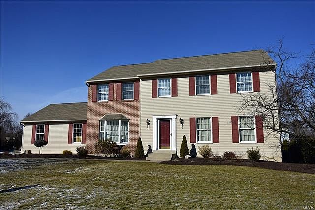 Nice Canterbury Estates 2 story Colonial 4 bedrooms 2.5 baths 1st. floor family room with fireplace, finished basement with tile flooring nice lot with inground pool. Crown moulding, chair rail, Anderson windows Master bedroom has dressing /make up area, walk-in closet, family room has double vanities. Neutral decor 10.3 X 13 patio and deck. This home is close to everything and to Routes 22 & 33,78 & 378. All existing appliances remain, HMS home warranty is included.