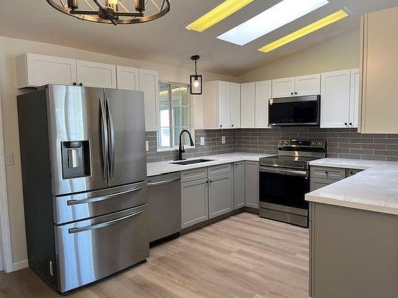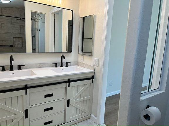 Covered patioLow-maintenance yardNew vanitiesNew faucetsStylish finishesFarmhouse sinkEnclosed arizona room