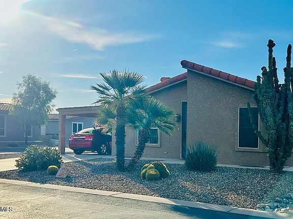 Take a moment and don't miss out on this home, located on a premium corner lot with amazing views of the Superstition Mountains out your front door. This stucco/tile roof home is an open living, kitchen, dining, split 2 beds & 2 full baths floor plan. Both bedrooms offer large closets. The master bed room is currently used as sewing center. Carport & enclosed attached storage shed. Access the Arizona room from either carport, kitchen or master bedroom for some beautiful morning mountain views. Home is approx.1350 sq. ft. (not too little & not too much). Simple desk area for business tasks. All appliances are included. This home is ready for your finishing touches to make it your year round dream home or winter time retreat. Welcome to the active sought after age qualified 'Resort of Dolce Vita' a guard gated entrance community. This beautiful community park setting offers lighted walking paths & benches, w/covered sit down patio areas, a 9 hole golf putting green, bocce ball, shuffle boards, multiple pickle ball courts, areas for corn hole toss or horse shoes, relax in the huge heated ocean entry pool or one of the 2 heated jet spas. The 33,000 sq. ft. maintained clubhouse accommodates a huge event room, an entrance social lobby, fitness center, 8 table billiard hall, library/puzzle den, craft center and card/game room. Community also has 3 pet parks, RV/trailer or boat storage area for Free. Don't hesitate enjoying all the activities, events & amenities here. Airports, hospitals, stores, restaurants, lakes, golf courses and mountains for hiking nearby.