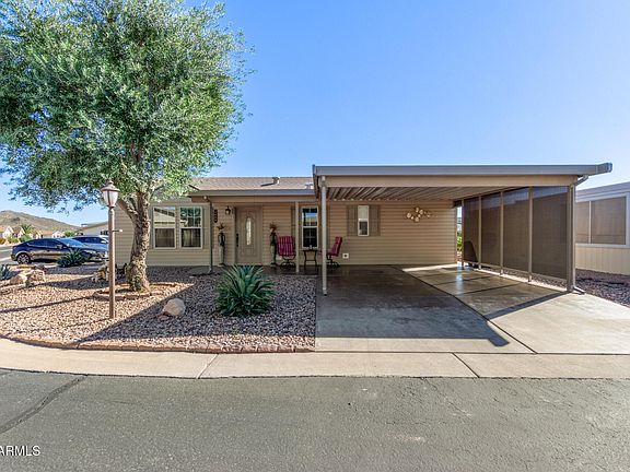 Resort-style heated poolLow-maintenance desert landscapingExtra-length screened carportPickleball and shuffleboard courtsStunning mountain viewsWalk-in closetLarge master bedroom