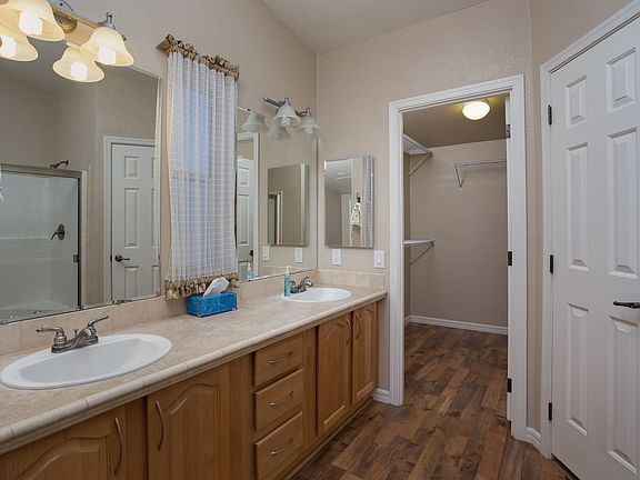Granite Countertops & Sink, Custom Faucets, Island Large Refrigerator, Walk-in Pantry Laminate Flooring and Wired Sound System for Stereo Throughout Ensuite Baths with Showers in Each Bedroom, Custom Linen Closet Handicap Accessible, Easy Access with Deep Steps to Entry Front Patio, Epoxy Glazed Concrete Oversized Screen Room, Sunscreens & Ceiling Fan with Mountain View Washer/Dryer, Soft Water & Reverse Osmosis Systems Security Door, Garage w/ Storage Cabinets Great Storage Shed, Covered Patio Vinyl Exterior, Architectural Shingles