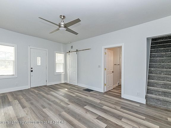 The heart of the home is the stunning open-concept living area, where the renovated kitchen flows seamlessly into the dining room and living room. The kitchen shines with modern stainless steel appliances, gorgeous countertops, and plenty of cabinet space for all your cooking needs.