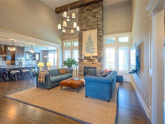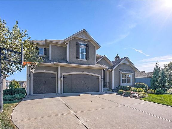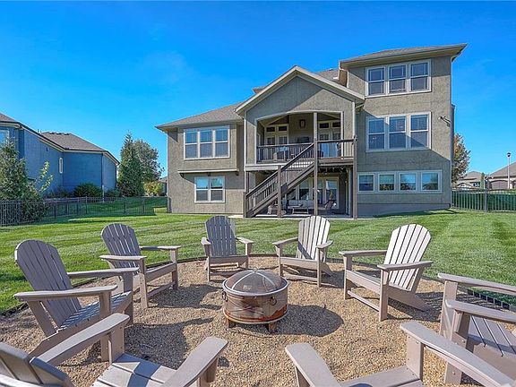 The finished walkout basement is built for entertaining, featuring a wide open game area perfect for a pool table, a private wet bar ideal for poker nights or football gatherings, and a spacious TV sitting area with access to a covered patio and backyard firepit. The fifth bedroom and a full bath are also located on this level, creating a private guest space or multi-generational living option. Located in the Blue Valley School District, this home offers a complete package of comfort, functionality, and luxury living.