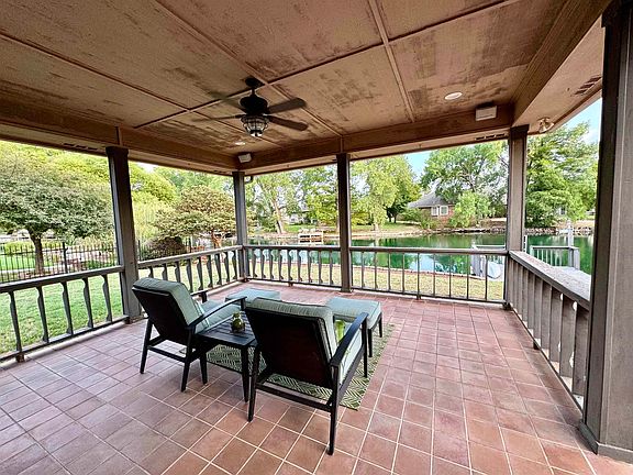 FOREVER HOME on water front lot! Enjoy your lake views while sipping your morning coffee or evening cocktails on 1 of 3 porches! The layout of this home is awesome for entertaining. Visit with company on the dock, covered patio, or inside the air conditioned Florida room with walls of windows from the ceiling to the floor equipped with a wet bar & surround sound speakers! The combination of high ceilings, the front clerestory window that bathes the foyer in natural light, and the lake views gives the sense of awesomeness upon entry! This one owner 3 bedroom, 2 bathroom, 2839 sq ft (mol), home was custom built with top quality finishes to include solid oak cabinetry, engineered hardwood flooring, beveled tile floors, granite in the bathrooms, skylight in laundry room, double wall ovens, stainless steel gas cook top, microwave, and refrigerator, built in pantry, wine rack, and breakfast bar. Informal and formal dining areas. Snuggle up around the brick fireplace with gas logs, in the formal living room. Lots of built in shelving and extra storage nooks. Gorgeous primary room with tray ceiling, crown molding, door to back patio, hard wood flooring, while the bathroom offers double sink vanities, jacuzzi tub, stand alone tiled shower, and walk in closet. Bonus room upstairs to use as you wish. Oversized garage too!