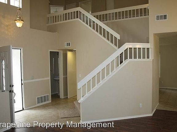 Vail Ranch two story 3 bedroom/2.5 bath on Cul-de-Sac - Three bedroom, 2.5 bath, two-story home located in South Temecula in Vail Ranch. Laminate wood and tile flooring throughout downstairs. Neutral paint throughout. Spacious living room has high ceilings and fireplace. Separate eat-in kitchen with lots of cabinet and counter space. Master bedroom includes dual sinks, large closet and walk-in shower. Private backyard with mature trees and landscaping, large covered patio area and lawn. Ceiling fans throughout. Walking distance to Vail Ranch Middle school. Gardener and trash included. Great location just minutes from shopping centers and freeway. Pets ok upon owner approval, additional $500 pet deposit required. Renter's liability insurance is required. Available for early July move-in. Shown by appointment only - please do not disturb occupants. (RLNE3202516)