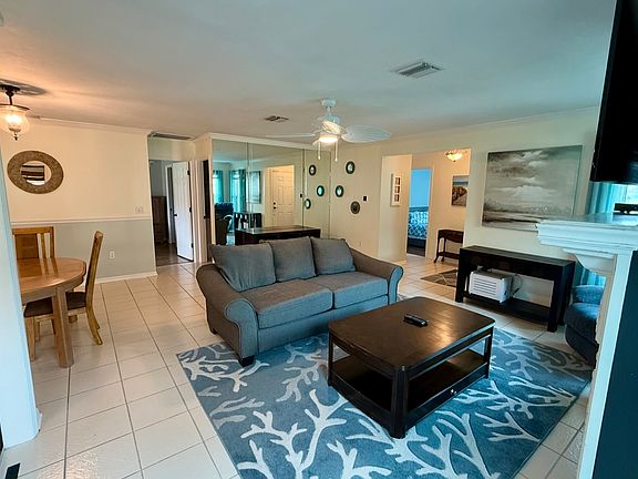 Inside, you'll find central air conditioning, hurricane-rated windows for peace of mind, and everything you need to settle in right away including dishes, pots, pans, and more. The home also includes a private one-car garage and two additional outdoor parking spaces plenty of room for guests or extra vehicles.