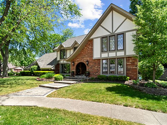 Elegant English-style home located in the highly desired Burr Oaks community offers 4 bedrooms, 3 baths that perfectly blends classic finishes with modern updates. With striking curb appeal and architectural details this home sits on a professionally landscaped 1/3 acre fenced lot and offers stunning curb appeal and distinctive character throughout. As you approach you are greeted by a paved walkway leading to a bricked arched doorway and a covered front porch. Step through the double doors into a traditional center foyer with architectural charm and natural light highlighting the hardwood floors. A generously sized living room and elegant dining room, complete with a wall of windows, create a warm and sophisticated ambiance - ideal for entertaining and everyday living. At the heart of the home is a stunning open-concept kitchen featuring timeless white cabinetry, gold accents, a central cooking island, breakfast bar, and abundant counter space with room for casual dining. French doors lead to a sun-drenched four-season sunroom, seamlessly connecting to the backyard with no maintenance deck-perfect for outdoor relaxation. The adjoining family room, anchored by a cozy gas fireplace and custom built-ins, flows effortlessly from the kitchen and into the formal living space, creating an ideal layout for family & friends' gatherings. Off the kitchen is a conveniently located mudroom that holds an updated full bathroom with tiled shower and newer vanity and leads to the oversized 2 1/2 heated car garage with epoxy flooring and custom storage lockers that simplifies day-to-day tasks. Upstairs, the private bedroom level includes four inviting bedrooms. The primary generously sized suite offers a serene retreat with sliding doors overlooking the backyard, ample closet space, and a luxurious bath upgraded with high end finishes - heated floors, enclosed glass shower, jet tub, 14 feet long dual-sink Brakur vanity, and central dressing island illuminated by a chandelier. Three additional bedrooms share a thoughtfully updated full bath with heated floors, dual vanities, a separate jet tub, and walk-in shower. One of the bedrooms comes with a surprise bonus along with a secret door that opens up to a super cool room over the garage - aka the ultimate kids' game zone! Think video games, board games, and pillow forts galore. This room is ready for fun. And with its own heating/cooling system and secret staircase to the garage, it's a great hideaway for your parents - no grown-ups allowed! An unfinished basement provides additional versatile space for play or storage. This is the one you've been waiting for-classic charm, modern comfort, and an unbeatable location in Burr Oaks. Don't miss it!