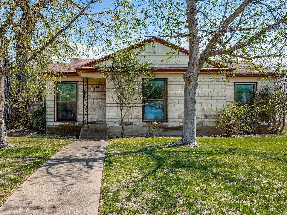 INVESTMENT POTENTIAL IN PARKDALE. Charming, Austin Stone cottage on oversized corner lot with two car detached garage has a large primary bedroom, original hardwood floors, and a functional layout that could be altered to create additional spaces. Put your finishing touches on this great starter home or investment property. Home is located in a nicely kept neighborhood 10 minutes from Downtown Dallas, and easily accessible on the Green Line.