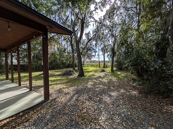 "Log Cabin" style block home. This beautiful property backs up to a small lake, and sits at the end of a cul-de-sac. The long driveway has lots of vegetation- offering privacy/seclusion. This 3 bedroom, 2 bathroom home has tile/polished flooring throughout, with an attached 2 car garage. The large back porch is ideal for rocking chairs or even a hot tub. Located in the heart of Central Florida: approx. 15-20 min from local area hospitals, and 35 min from OIA makes it an ideal place to live especially if you travel. Launch your kayaks and fish from your own back yard, and enjoy the trails nearby on bike or on foot.
