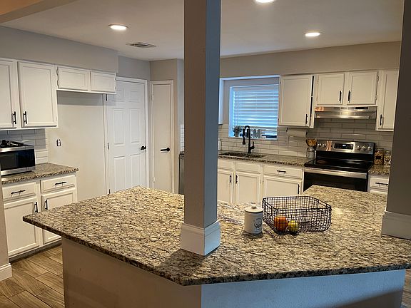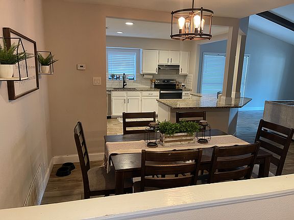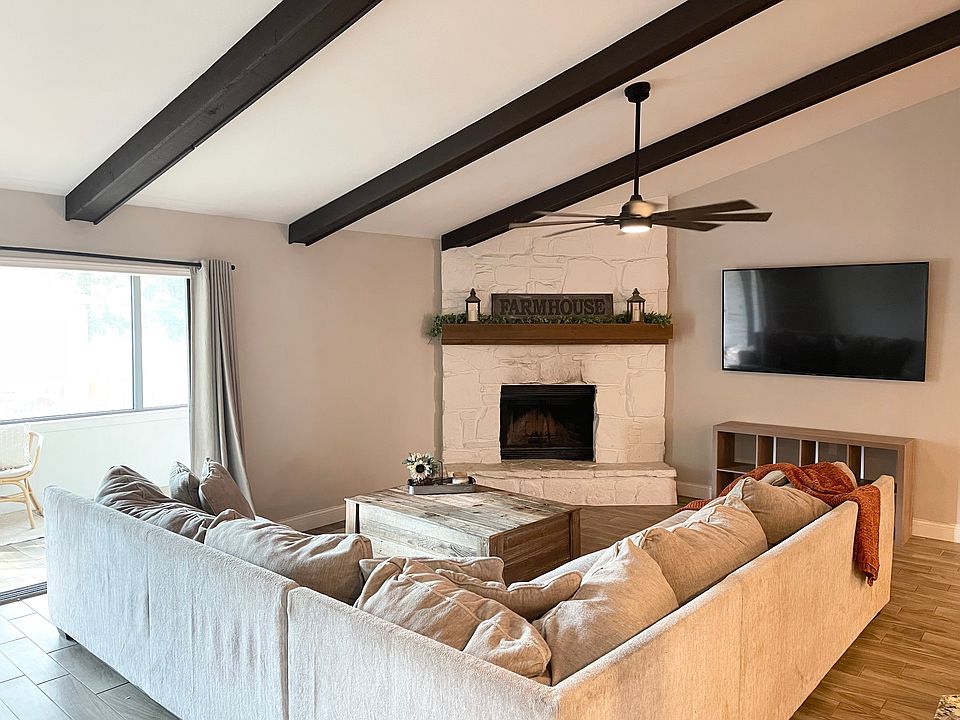 Beautiful 3 bed 2 bath with a extended room off the back of the house perfect for a playroom, sunroom, office or formal dining. Master bedroom has 2 full closets. Large kitchen, large living room with open concept and high vauted ceilings. Recently renovated with modern farm house fixtures and wood burning fireplace. Indoor laundry room with custom storage and shelves. Also, this property has a lovely covered patio (great for entertaining) with a garden, waterfall, shed, 2 car garage and also side storage similar to RV parking.
