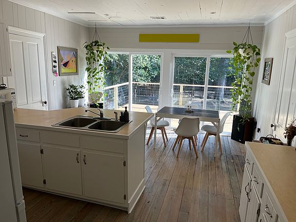 Newly remodeled antebellum house with electrified outside workshop on 1.5 acres with pecan trees, fruit trees, and a creek. This historic house dating to around 1860 features hardwood floors, tongue-and-groove walls and ceilings, two fireplaces containing wood stoves, and a large kitchen with a "glass wall" opening to deck and backyard. Some items are in place but optional including a sofa, chair, loft, table, and washer/dryer. The back yard has fencing from its days as a minifarm and is bordered by Rocky Creek. The property is located across from an elementary school and near shopping and restaurants. Lease is 1 year, I'll consider shorter. Non-smokers only. Owner pays water. Renter pays electric. No gas. Non-refundable pet deposit is $300. Excellent rent history and/or employment history and good credit required. Rent to be reduced by $150 if renter commits to regular maintenance of yard. Property is available now though cleanup from Hurricane Helene and minor improvements are ongoing.