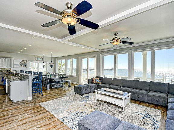The Atlantic Whale invites you to experience oceanfront living at its finest—just south of the iconic Cherry Grove Pier. This stunning 8-bedroom, 7.5-bath coastal retreat is designed for relaxation, recreation, and unforgettable memories. With accommodations for up to 30 guests, it’s the ideal choice for large families, vacationers, or investors seeking a high-performing rental property. Enjoy breathtaking ocean views from two spacious balconies, or gather in the open-concept living area featuring a 75” flat-screen TV, fireplace, and wet bar—perfect for entertaining. The chef’s kitchen offers a generous breakfast bar and dining table, each seating ten, plus a walk-in pantry and large laundry room for added convenience. Three luxurious primary suites provide comfort and privacy—two with sweeping ocean views upstairs and one on the main level with accessibility features. The top floor is a guest favorite, offering a vibrant game room with pool and foosball tables, a lounge area with three sofas, and two bunk rooms connected by a shared bath. Step outside to your private oceanfront oasis featuring a new pool, spa, and sun deck—an ideal setting for grilling out or unwinding to the sound of the waves. With on-site parking for seven vehicles, “The Atlantic Whale” combines luxury, space, and location into one exceptional coastal getaway. Schedule your private showing today and discover why this exceptional beach home stands out among North Myrtle Beach’s premier oceanfront properties.