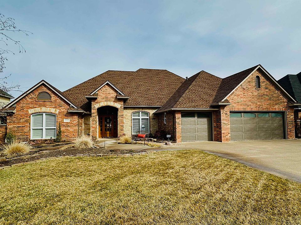 Immediately after stepping into the foyer, you see this home has been meticulously kept. The expansive windows in the family room and kitchen/dining showcase the manicured flower gardens and water front view. The formal dining is proportioned for large gatherings. Enjoy the isolated primary bedroom and bathroom which has a jetted tub, separate shower and two sinks. Two other bedrooms share a hall bathroom. The office/study has built in storage. Located close to the kitchen and family room is a powder room. The 3 car garage has storage nooks and an automatic lift for getting items into the attic.