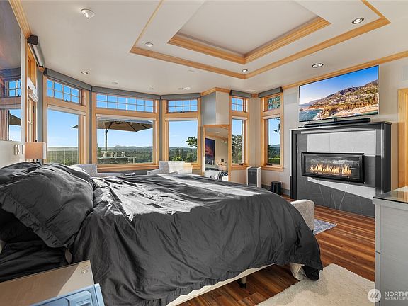 The Eagles Nest nestled atop Skagit Bay, featuring premier and expansive Westerly views over Skagit Bay, the Olympic Mountains and a vast array of Islands as your foreground. Designed to entertain with multiple fireplaces, soaring vaulted and beamed ceilings, walls of windows and glass the opens to 2500 sq ft of tiered patios and a new pool that adorns the expansive garden. Enjoy open concept living spaces with a game room, bar, wine cellar, and main-level master w/ fireplace and spa bath. New Wet/Dry Sauna, 6 bay 2,330 sq ft shop with a garden-room, private 1 bedroom & bath guest lounge that opens to a terrace offering spectacular sunsets. 7 Min to I-5, Stanwood, the amenities of town, close to airports, Vancouver B.C, and Seattle.