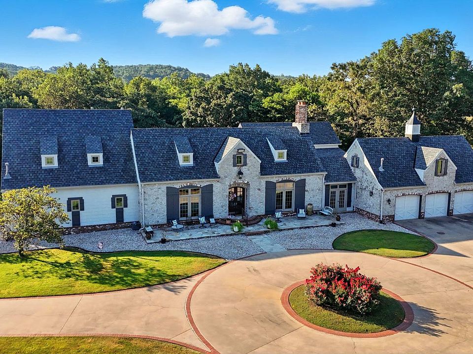 White Water Creek Ranch, priced at $3,400,000 is a one of a kind 40 acre picturesque property on White Water Creek of "Grand Lake of the Cherokees" located in Northeast Oklahoma region known as "Green Country." The property not only features the clear beautiful year round springlike creek running through it, but also luxurious landscaping and improvements including horse facilities built for award winning Arabian horses, plus Show Dog kennels .The property is located conveniently to the lake community town of Grove with shopping, restaurants and cinema theater. Property also features added amenities such as heated pool and guest house, pickle ball and basketball court, private gated entrance winding along manicured scenic approach. Trees and views of the winding creek abound as approaching the luxurious 6000 sf Jack Arnold designed French Country manor.