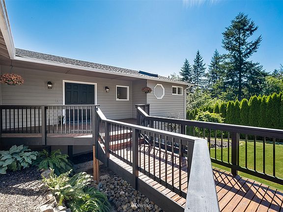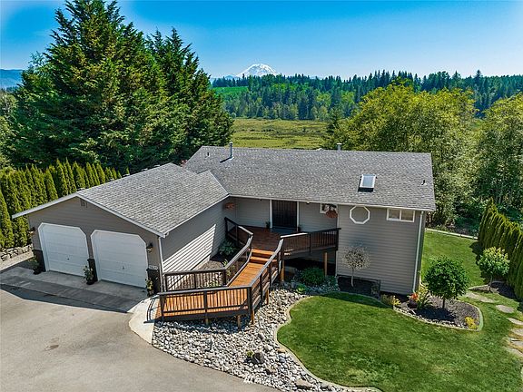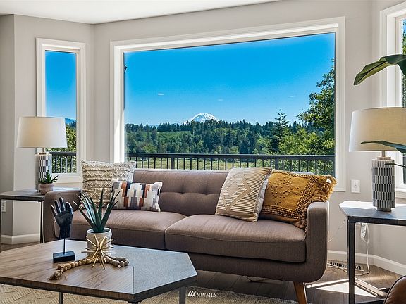 Show stopping views of Mt Rainer, from dawn to dusk, every season of the year! Enjoy all the personalities of Mt Rainer each day from the large trex deck facing south over green yard. In all the main rooms, the mountain is a stunning backdrop to this lovely newer home just 5 min away from all the historical town of Black Diamond has to offer. Multi-generational layout w/great room on the main level, owner’s suite w/5 piece bath & updated kitchen; then lower level w/high ceilings, 2 additional bdrms, family room w/gas frplce & 2nd kitchen for extended living or rent. Beautiful remodeled half bath on main & 3/4 bath in LL. New flooring, no carpet & much new interior paint throughout. Very private end-of-drive location w/views from LL as well!