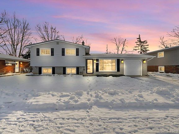 Beautiful and exceptionally well-maintained tri-level home located in the highly desirable Farmington Meadows Subdivision. Major updates provide true peace of mind, including a brand-new 2025 roof, new furnace and A/C (2022), newer blinds throughout, updated exterior and some interior lighting, a custom front entry door, and a widened driveway that comfortably fits a second vehicle in tandem. The backyard has been transformed with a stamped concrete patio and pergola—perfect for entertaining or relaxing. Inside, enjoy abundant natural light, wood flooring on the entry and upper levels, and a large, cozy remodeled family room featuring a natural wood-burning fireplace with white-washed brick. The spacious primary bedroom, finished rec room, and thoughtful updates throughout create a warm, move-in-ready feel. The location is unbeatable—you can bike to downtown Farmington, enjoy the charm of mature tree-lined streets, and appreciate the warm, welcoming neighbors. The fenced-in backyard is ideal for kids, gardening, entertaining, or simply unwinding. An attached one-car garage with epoxy floors offers convenient parking and additional storage.