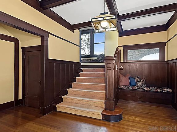 Historic 'California Bungalow' in Bankers Hill on desirable 2nd Avenue. Mills Act approved. Current ownership for past 45 years and lovingly maintained. Corner lot. Newer kitchen, heating and AC. Optional room on the second floor, originally the 'sewing room' has also been used as a nursey or additional bedroom Two car detached garage (originally the stable) with finished optional room above in what was the hayloft. It has recently been used as a home office. Large unfinished, stand-up attic. Charming brick patio. Four short blocks to Balboa Park. Walkable to Hillcrest and Bankers Hill shopping, dining, and entertaining locations as well as medical and other professional services. Excellent city bus service nearby. Quick trip to the airport and city highlights.