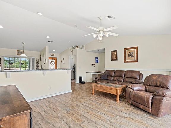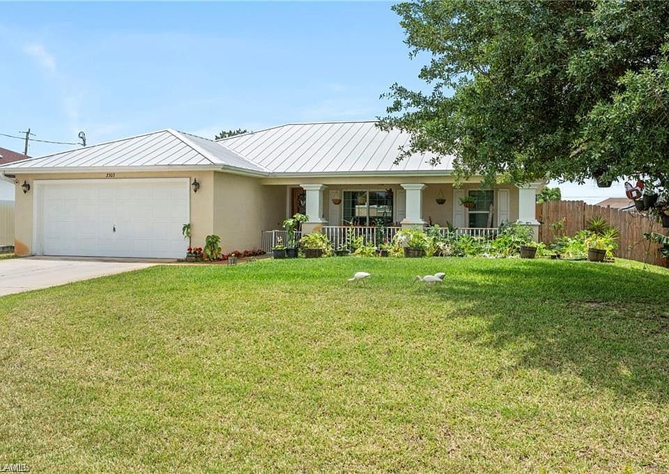 MOVE-IN READY • MODERN UPGRADES • NO HOA • MOTIVATED SELLERS!! WILLING TO CONTRIBUTE A PORTION OF CLOSING COSTS WITH A STRONG OFFER!! Welcome to this beautifully updated 3-bedroom, 2-bath home in sunny Lehigh Acres! Situated in a NO flood zone with NO HOA and NO rental restrictions, this property is ideal for both homeowners and investors alike. Inside, you’ll find an inviting open layout with vaulted ceilings, fresh interior and exterior paint, and tile flooring throughout. The updated kitchen features stainless steel appliances and plenty of space for cooking and entertaining. The split floor plan provides comfort and privacy, while recent upgrades offer lasting peace of mind, including a metal roof with transferable warranty, hurricane impact windows and doors, a new A/C (2022), brand-new water heater, a 2-year-old water softener system, and a fully transferable solar panel system for energy efficiency and long-term savings. Step outside to enjoy the lushly landscaped yard featuring new sod and irrigation, fruit trees and vegetable gardens, a custom front porch with great curb appeal, and a fully fenced yard with room for a pool. The spacious two-car garage provides plenty of storage and convenience. Bonus: the safe in the primary bedroom closet stays with the home. Conveniently located just minutes from I-75, SWFL International Airport, shopping, and dining, this move-in ready home offers the perfect blend of comfort, value, and freedom.