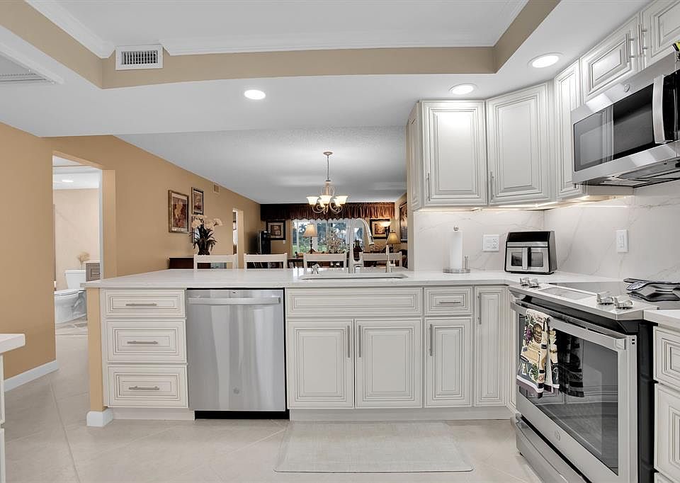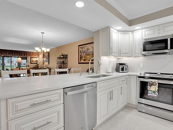 Discover unparalleled elegance and functionality in this exquisite home, located in the prestigious Aruba Village. This exceptional apartment boasts a bright north & south exposure, flooding the space with natural light. The gourmet kitchen flows seamlessly into the inviting living area, Dining seats 10. closets with ample space and  spa-inspired bathroom. Take in breathtaking views of the private golf course, serene lakes. The open-concept layout features stylish porcelain butted tile, high-end stainless steel appliances, Quartz countertops, and a chic backsplash. Both spa-like bathrooms offer luxurious showers, while the kitchen includes an extra-wide stainless steel sink, a slide-in stove, and a wine/water cooler. Enjoy added tranquility with the quiet AC silencer. Inside washer dryer *HEATED SWIMMING POOL*WYNMOOR COUNTRY CLUB FEATURES: IN HOUSE MOVIES & LIVE SHOWS ON SATURDAY NIGHTS WITH DANCING AFTERWARDS IN THE WEST WING OF THEATRE*18 HOLE EXECUTIVE GOLF COURSE.*TENNIS/PICKLEBALL COURTS, BOCCE COURTS, STAINED GLASS, CERAMICS, POTTERY, ART STUDIO, GLASS KILN, ZUMBA & WATER AEROBIC CLASSES, BILLIARD/POOL CENTER WITH HEATED BILLIARD TABLES, PING PONG, SAUNA, RESISTANCE WALKING POOL*SHUTTLE BUS SERVICE*OVER 90 CLUBS TO MEET NEW FRIENDS*962 THEATRE WITH DOLBE SOUND SYSTEM COFFEE SHOP REST. WYNMOOR IS LIKE A 'SLEEP AWAY CAMP FOR SENIORS" 55+.