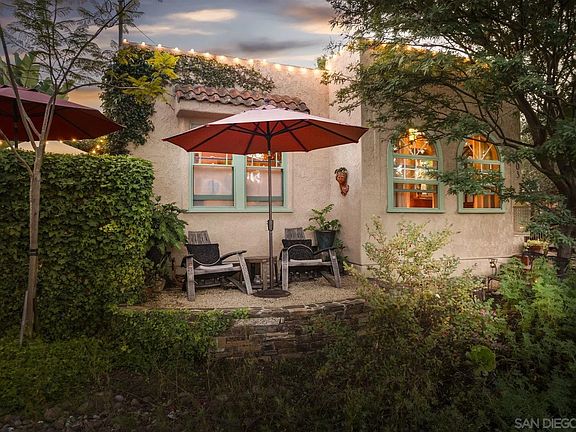 Get ready to be enchanted! This classic Spanish home sits perched on a quiet, tree-lined street just two blocks north of Adams Avenue. Set in the heart of Normal Heights, this charming bungalow recently celebrated its 100th birthday and is on the market for the first time in 20 years. Enter via a cobbled drive and terracotta steps, through an enchanting garden and terrace shaded by olive and mesquite trees. Inside, enjoy original oak hardwood floors, coved ceilings, and ample natural light. Features include: Wood-burning fireplace, restored sash windows & doors, silent ceiling fans with dimmable lights, Bosch range/oven, wine fridge, stainless steel refrigerator, abundant storage, and artistic touches throughout. The kitchen/dining area opens to a breezeway that connects to a courtyard, garage, and private garden. Outdoor highlights include a fountain, custom lounge bench, creative paving, and a new redwood fence. A private flagstone terrace, mature palms and water-efficient gardens provide an urban sanctuary. Impeccably cared for, this home showcases its original charm while boasting modern updates such as enhanced plumbing and foundation improvements. The detached garage offers a high-efficiency washer/dryer, utility sink, storage shelves and could potentially be converted to an ADU or extra living space. Located on a serene street, this home is a short walk to Adams Avenue's vibrant amenities, including bars, restaurants, shops, and parks featuring summer events and festivals. Enjoy the best of urban convenience and tranquil living in this delightful home. Just a short stroll to a host of bars, restaurants, yoga studios, hair salons, vintage clothing boutiques, coffee shops, beer and wine specialists, bakeries, plant shops, ice cream/gelato shops (one voted the best gelato in America!), and the good old fashioned corner post office. You'll love the urban yet small town feel. Summer movies in Ward Canyon Park are a treat, summer concerts in Trolley Barn Park are always a hit, and there are two annual street/music festivals on Adams Ave that you’ll be happy you don’t need to find a parking space for! Local Favorite Spots: Blind Lady Ale House - Casual craft beers and pizzas, weekly live music. Nomade - Tapas and turntable tunes. Relaxed sophistication. Bica - Portuguese inspired coffees, pastries and lunches, to go or in their outdoor space. The Ould Sod - Simple Irish pub. Best Guinness in town. Home ec - Foody, kitcheny gift shop. Stehly Farms - Small but well stocked grocers with a deli counter and outdoor seating. Kiko & Sven - Plants, clothes, children’s goodies, cards and plenty more gifty items. La Loupe - Vintage clothes, shoes and bags plus retro inspired socks, cards, sunglasses. Sukhotu Thai - Authentic Thai takeaway or eat in at their intimate restaurant. The Vibe - Breakfast/brunch every day in an airy, vibrant setting.