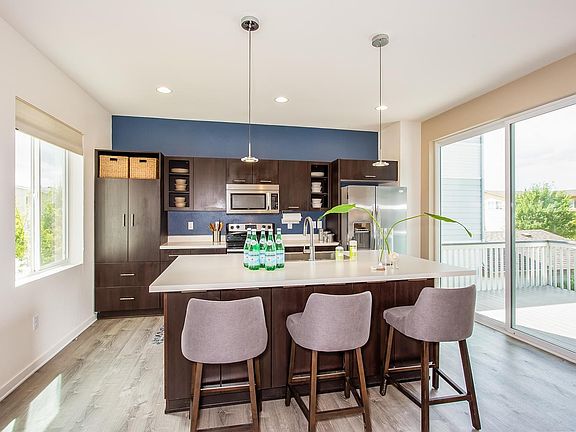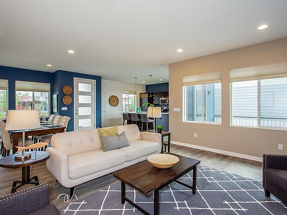 Welcome Home to this modern style home in Spaces Community in Highlands Ranch! The light & bright open floor plan offers a great room perfect for entertaining. The beautiful kitchen features stainless steel appliances, pantry and large island. Upstairs you will find spacious master bedroom with private bath, an additional bedroom, bathroom and loft, which is perfect for an office or play area. The unfinished basement is ready for your finishing touches. Other bonuses include: new flooring on main floor, newer carpet, solar (owned not leased). Close to shopping, restaurants, parks-HURRY! Loft can be converted to bedroom if needed by seller.