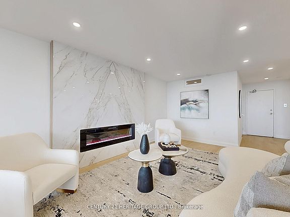 **A MUST SEE** Welcome to more than 1600 sqf of living space! Open Balcony corner unit, All Inclusive utilities + Internet. Prestigious Skymark 1 by Tridel. Rarely Offered N.E Corner Unit. UNOBSTRUCTED view to North, East and partially South (Airplane view). Top to bottom renovated unit, Custom Design Kitchen with Quartz Islands and Quartz Backsplash, Engineering Hardwood Floor all through, full of Natural lights and Dimmer Switch Pot lights, Outstanding Electrical fireplace, 24-hour gatehouse security, 5-star amenities including indoor & outdoor pools, tennis courts, gym, table tennis, card room, billiards, golf, study Room and meeting room. The building boasts large, beautiful gardens with a waterfall, a lounge area, and walking trails. Ample visitor parking is available as well. Walking distance To Shopping plaza, No-frills, Banks, Restaurants, next to 404/Dvp,401,407. Hospital and Seneca College. Lobby, Hallways and entrance doors will be new within the next two months. Don't miss out!