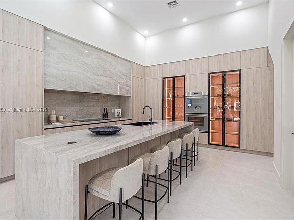 Stunning & fully remodeled home nestled in one of the most sought-after gated communities in Davie. Every detail was well thought out with impeccable taste. Over 5,000 sqft of living area featuring 5 beds, 6 full baths, an elegant glass door office & theater room. Get greeted by high ceilings & natural light. The floor to ceiling fireplace wall creates a striking focal point. Beautiful gray porcelain floors & wood-look tile upstairs. All new impact windows. New gourmet kitchen featuring a seamless design with Led lighting, porcelain countertops perfectly matching the custom wooden cabinets. Primary suite featuring an endless walk-in closet that leads to the flawless master bath. Modern Built-in wine display & custom bar perfect to entertain. Spacious backyard featuring a new summer kitchen
