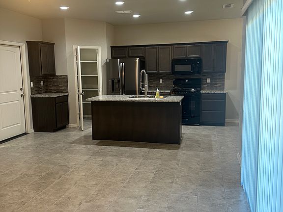 Beautiful 1242 sq ft home with a 2-car garage in the desirable Southern Vista neighborhood. This home has 3 bedrooms and 2 bathrooms with ceiling fans in the living room and master bedroom. It has an open concept living, dining and kitchen area. Tile flooring in the living room, kitchen, dining, laundry room and bathrooms. Carpet in all of the bedrooms. The kitchen has a walk-in pantry and granite countertops. The appliances include a gas stove, microwave, dishwasher, refrigerator, washer and gas dryer. A water softener is also included. The master suite is a nice size with a walk-in closet. The master bathroom has a walk-in shower with glass doors. The outside has a landscaped front yard with automatic watering system, RV parking, covered patio and a block wall around the backyard.