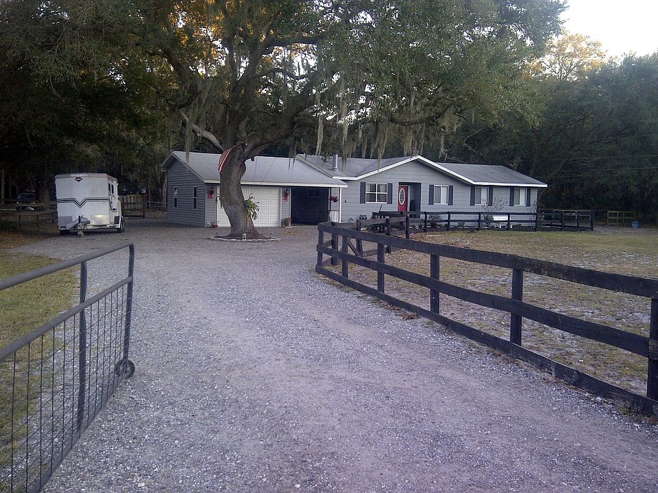 This is a charming house situated in the beautiful equestrian community of Sundance. The total sq. footage of this house is: 1812 sq. ft. The heated space is 1444 sq. ft. As far as improvements go, the house was completely re-piped in 2007. It was last updated in 2010. The heating and air conditioning system was replaced in 2010. The 2 car garage/carport was added in 2010 and the sizes are as follows: 2 Car Garage: 370 sq. ft. / Carport: 11' x 29". Both areas offer nice attic storage. This addition was built to withstand 130 mph winds (storm shelter ready). There is a very nice barn on the back of the property which offers two (2) in-stalls and one (1) out-stall as show in the picture. It also houses a nice size tack room, work shop and hay room. It is wired for 220 electricity and is equipped with running water to each stall as well as other areas. There is a wash rack at that location as well. For you stall muckers, there is a nice size compost bin area at the rear of the property. Grass seed was planted this season and the lawn is green and plush. The entire property is completely fenced. There are several areas of the fencing that is equipped with a brand new hot wire system to ensure confinement of horses within particular paddock areas. The front of the house area was freshly landscaped last year and everything is blooming nicely. There are three (3) major Homeowner Association amenities worth mentioning. The first is a 40 stall barn facility with a very large lighted riding arena. The second is a nice size park with a walking trail and other offerings. Finally, there is a nice outdoor recreational facility equipped with a boat ramp, picnic and party pavilion as well as full service restrooms. To see more about what the community offers, paste the following link into your browser: www.sundancefl.org Feel free to call with any questions that you may have at 813-789-8923. Come on out to the country!!! This property is a real bonus is you like or have horses. It is perfectly set up and ready to move in.